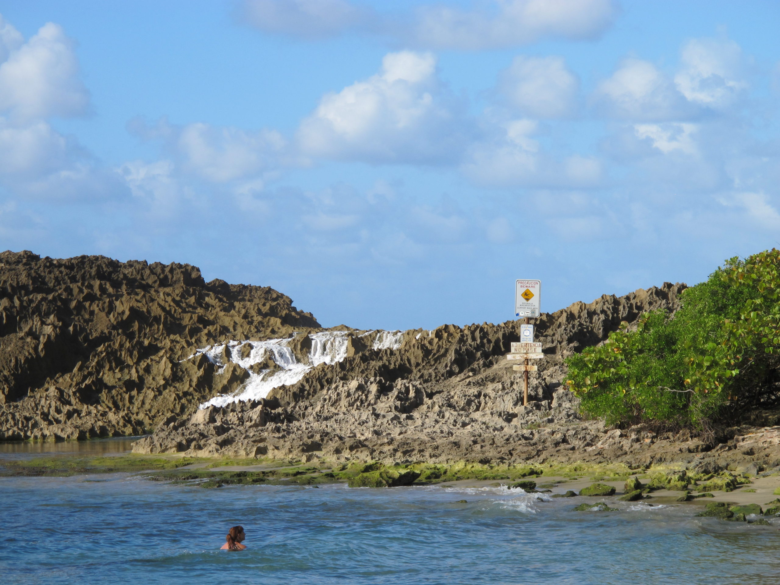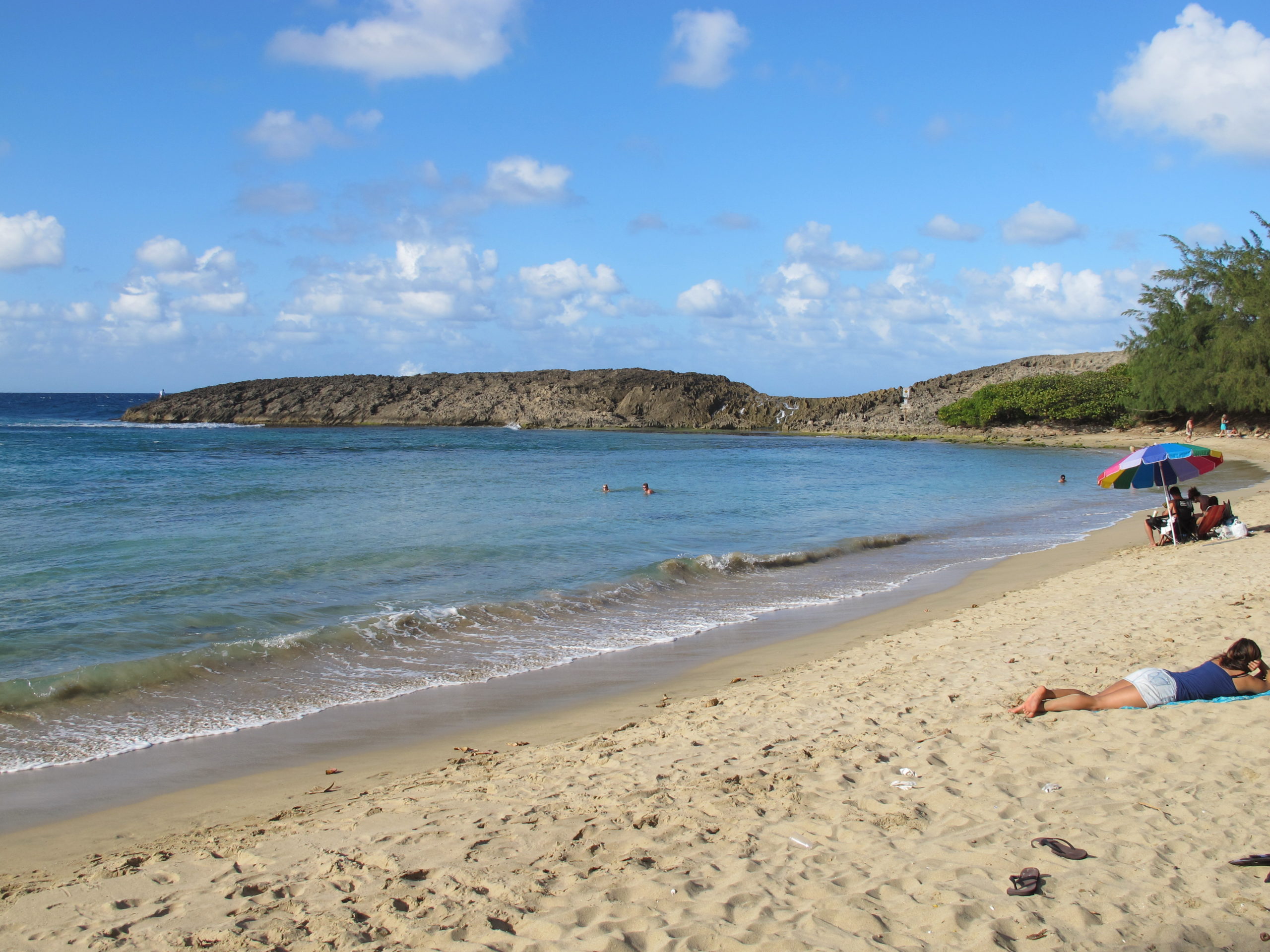 Este lado de la playa tiene un rompeolas natural.